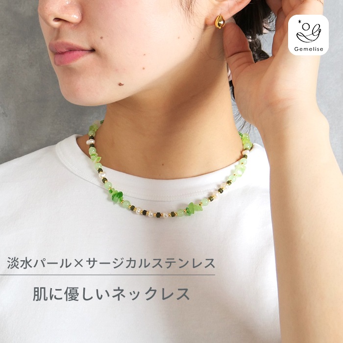Gemelise ジェメリース 淡水パール×天然石(アマゾナイトなど)ネックレス 950199