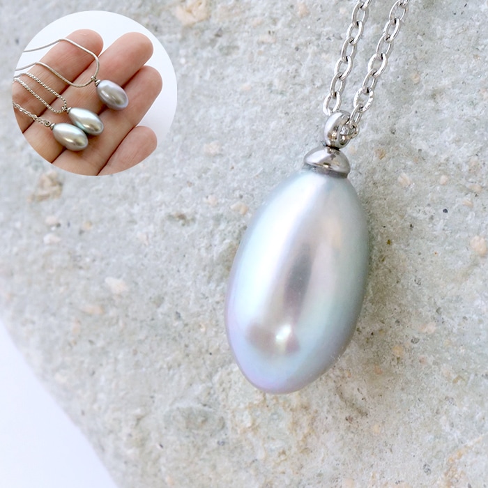 淡水パール【115. グレー 一粒 ネックレス】淡水真珠 金属アレルギー対応 ステンレス オケージョン 抜け感 高品質 テリ カジ...