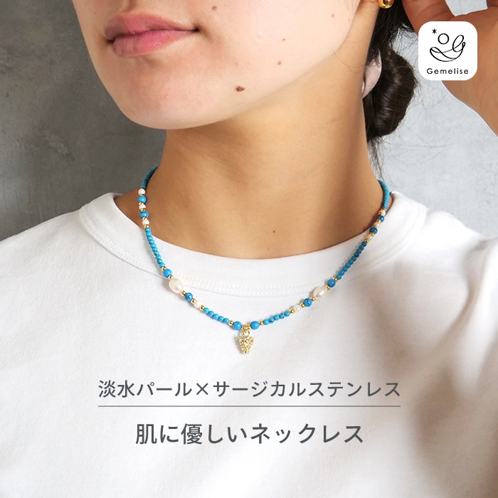 Gemelise ジェメリース 淡水パール×天然石(ターコイズなど)ネックレス 950257
