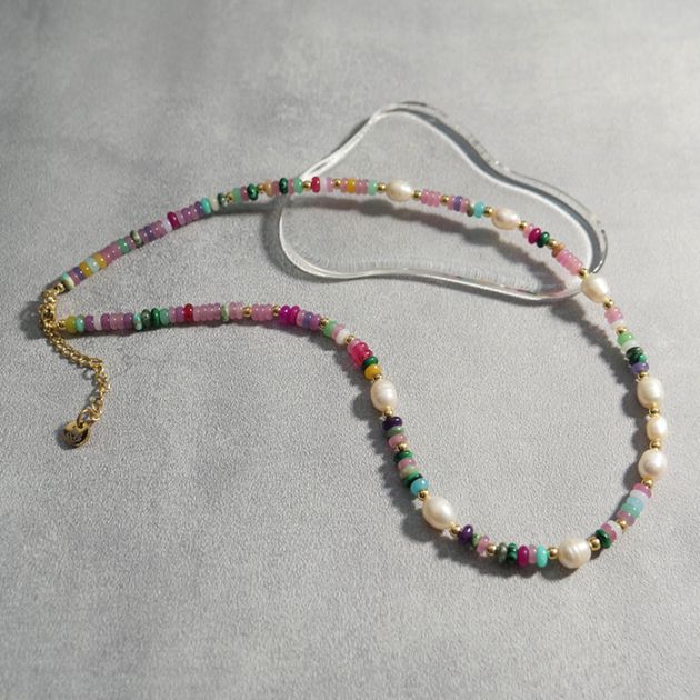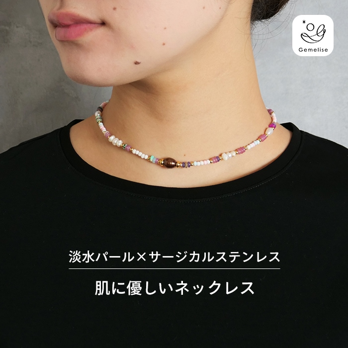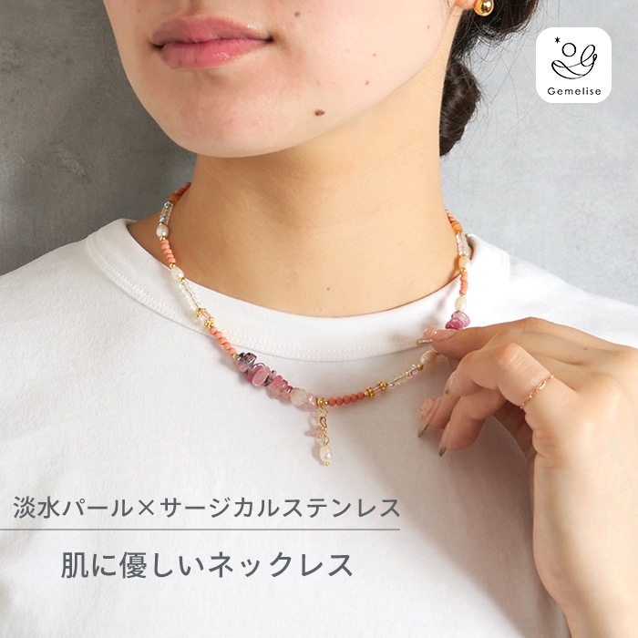 Gemelise ジェメリース 淡水パール×天然石(ピンクオパールなど)ネックレス 950217