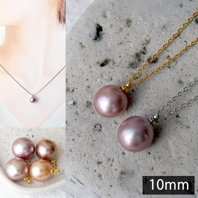 金属アレルギー対応【111. 有核 カラー 淡水パール 10mm 一粒ネックレス 42cm】セミラウンド サージカルステンレス 淡...