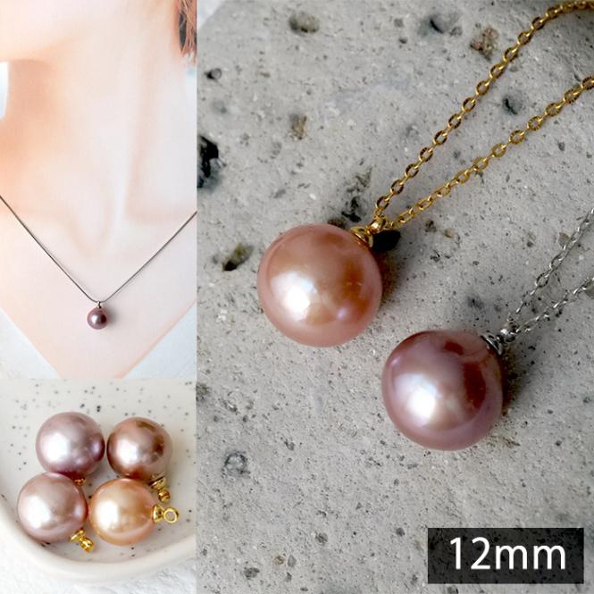 金属アレルギー対応【111. 有核 カラー 淡水パール 12mm 一粒ネックレス 42cm】セミラウンド サージカルステンレス 淡...