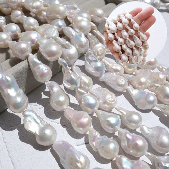 高品質【271. 淡水パール バロック オイスター ビーズ 連 】 ホワイト 17-10mm 長さ39cm 淡水真珠 国内発送