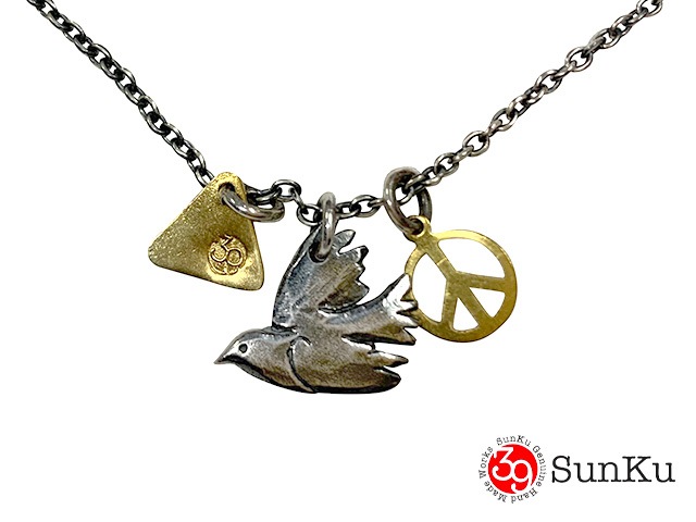 Sunku サンク Dove Necklace ダヴ ネックレス シルバー ブラス アンティークビーズ 鳩 ピースマーク