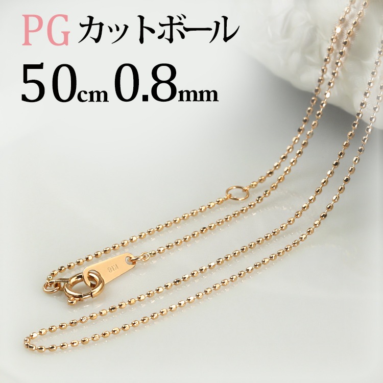 K18PG カットボールチェーン(50cm 幅0.8mm)