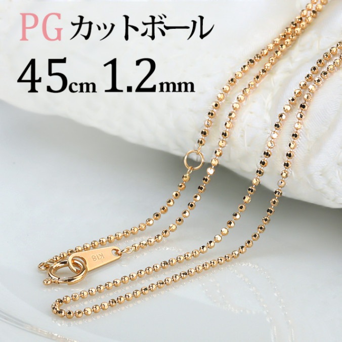 K18PG カットボールチェーン(45cm 幅1.2mm)