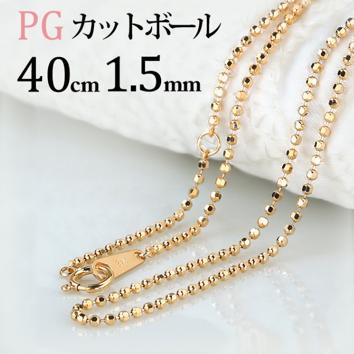K18PG カットボールチェーン(40cm 幅1.5mm)