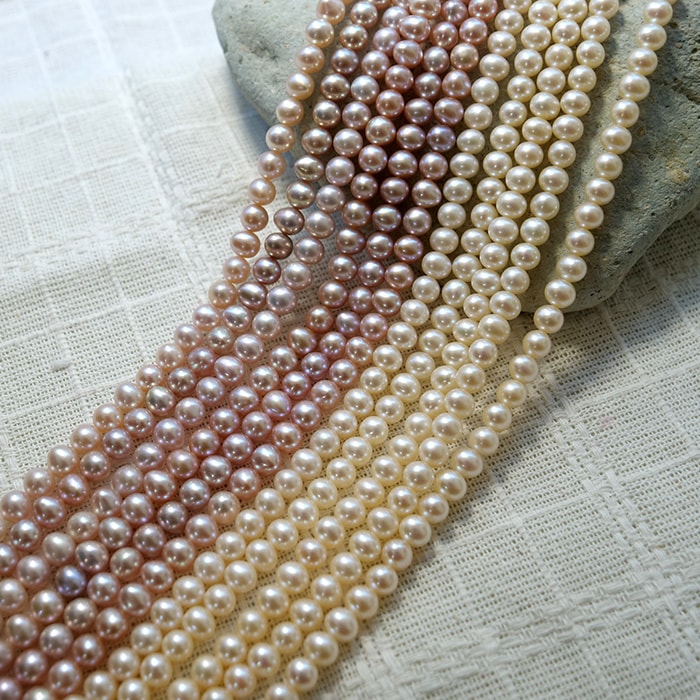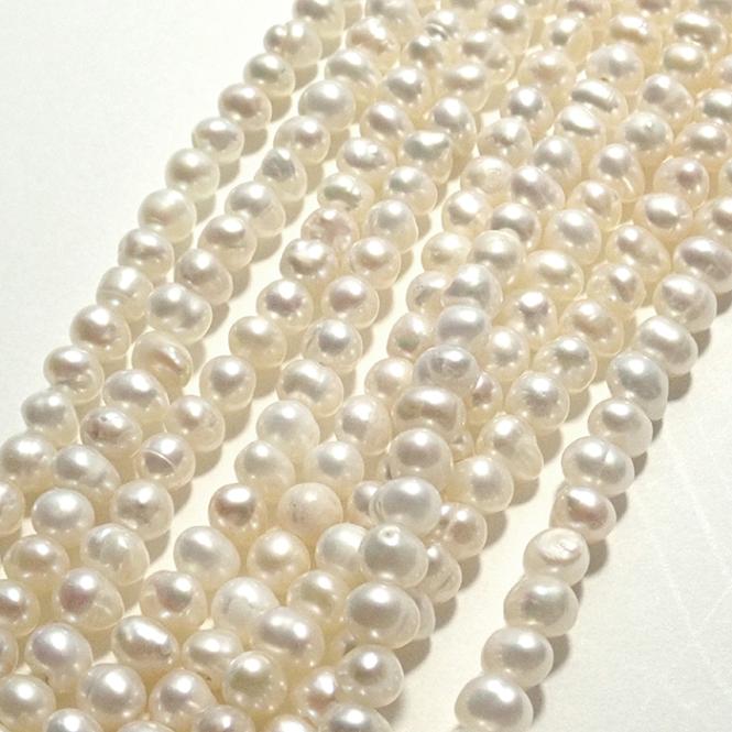 高品質【265. 淡水パール エッグ クレオ ビーズ 連 】 ホワイト ポテト 4mm 5mm 長さ38cm 淡水真珠 国内発送