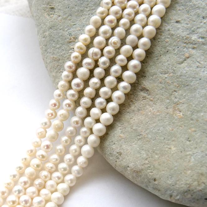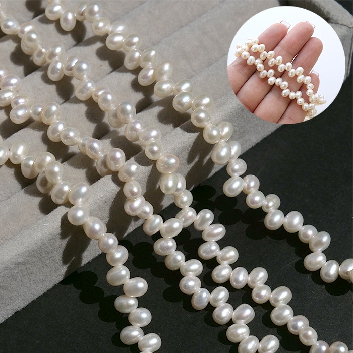 【242. ポテト 淡水パール ビーズ 連】 ベビーパール 約4*3mm ホワイト 約38cm 淡水真珠 国内発送