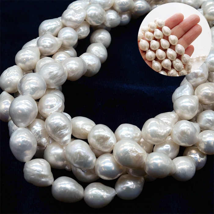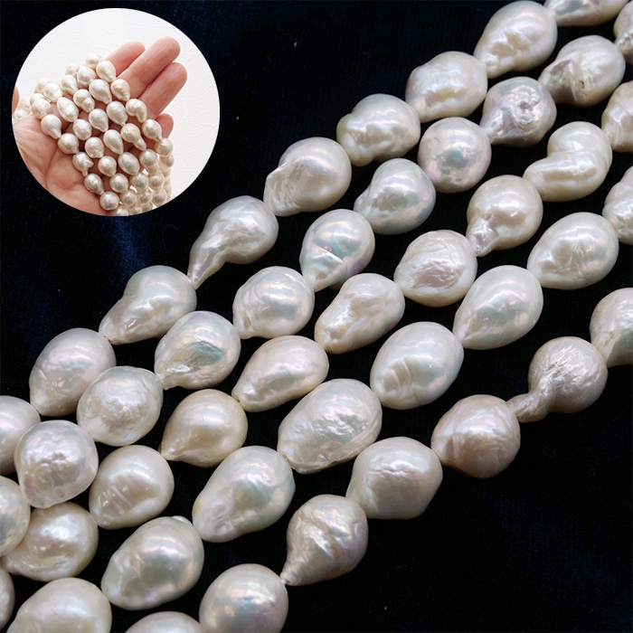 【272. 淡水パール バロック ドロップ ビーズ 連 】 ホワイト 15-10mm 長さ39cm 淡水真珠 国内発送
