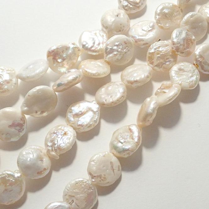 【233. コイン淡水パール ビーズ】 約10mm/粒 半連 長さ 約18cm ホワイト 国内発送 淡水真珠
