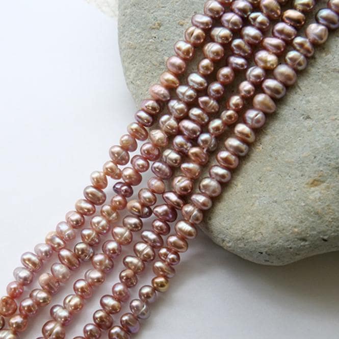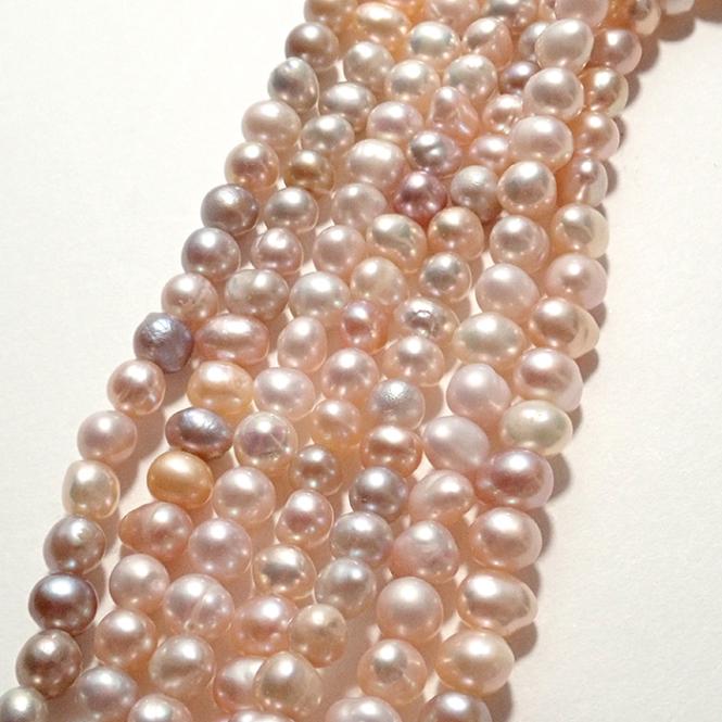 【227. ポテト型 淡水パール 連】約 6-6.5mm 1本(約40cm)セミラウンド ビーズ 国内発送 淡水真珠