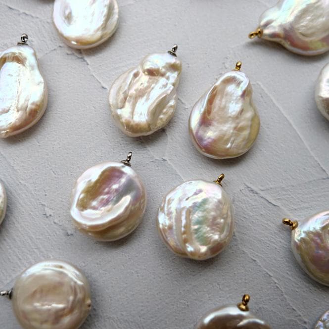 【257. 淡水パール コイン型 チャーム 】ホワイト1個 オパール型 トップ 淡水真珠 国内発送
