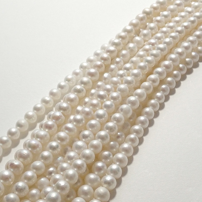 【236. セミラウンド 淡水パール ビーズ】 ミニサイズ 約3mm/4mm/粒 長さ 約38cm ホワイト 淡水真珠