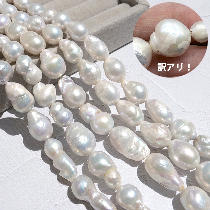 【274. 淡水パール バロック ドロップ ビーズ 連 】 訳アリ ホワイト 15-10mm 淡水真珠 国内発送