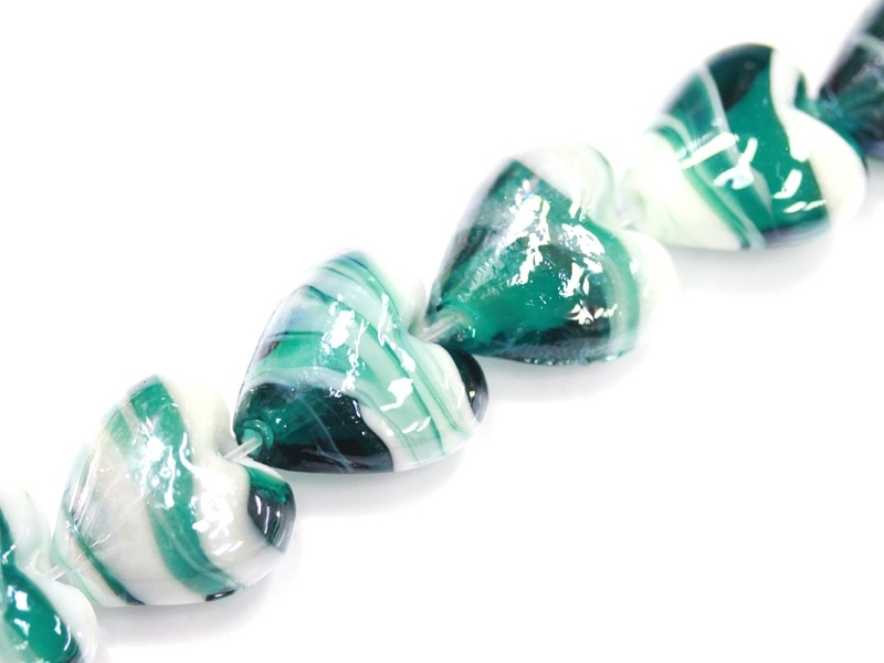 キュートなハートカット★限定入荷★ガラスビーズ/グリーンマーブル/ハートカット/18×12mm/1連(約27cm)【天然石/パワー...