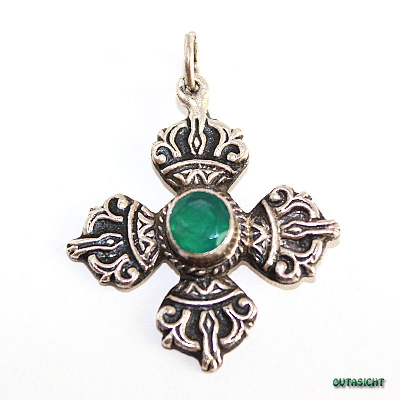 シルバーペンダントトップ Wドルジェ グリーンオニキス ネパール SPS-100