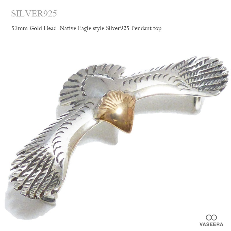 ネイティブ ゴールドヘッド 53mm大型イーグル(鷲) シルバー925 ペンダント トップ 【インディアンジュエリー/SILVE...