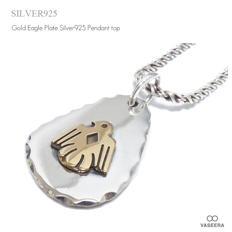 ネイティブ ゴールド・イーグルシンボル(鷲) 29mmプレート エンボス仕上げ シルバー925 ペンダント トップ 【インディアン...