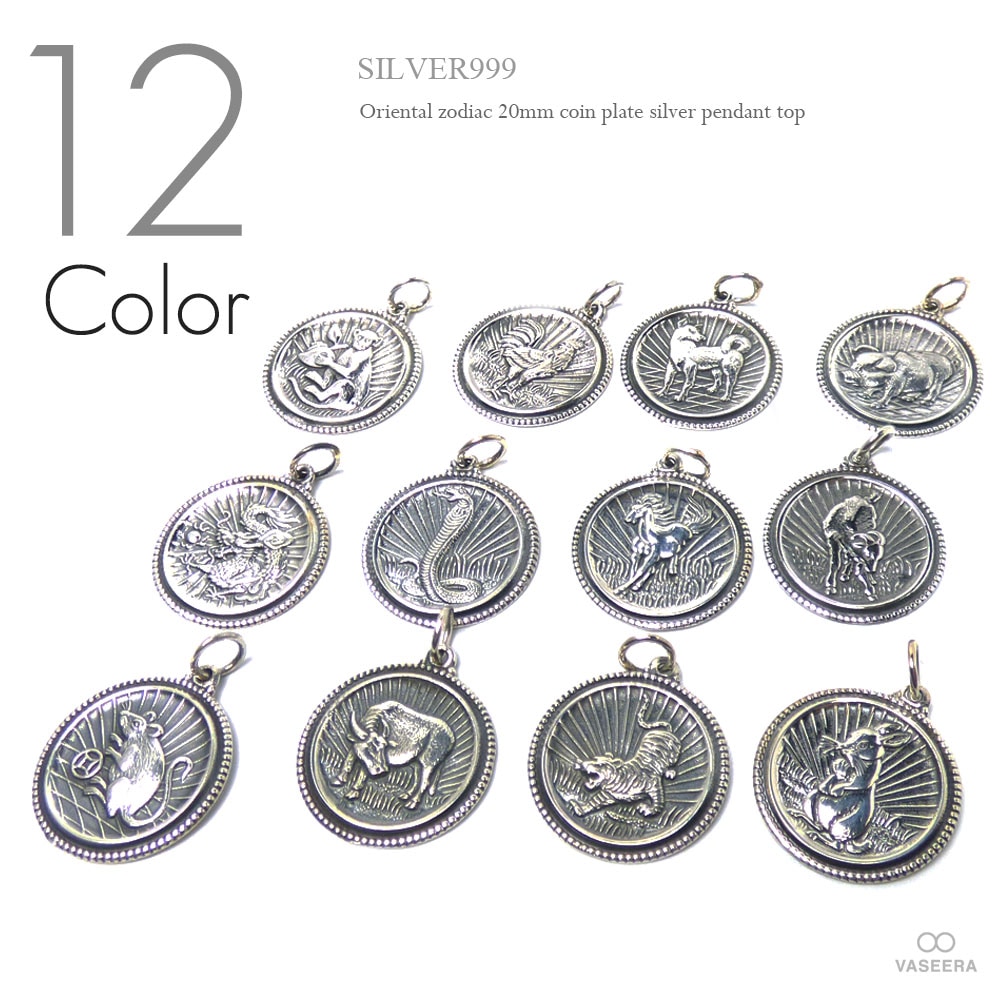 オリエンタル・ゾディアック(十二支) 20mm シルバー コイン プレート ペンダント トップ 【シルバー999/SILVER99...