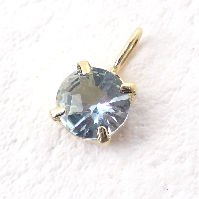 【K18 刻印入り】アクアマリン チャーム ペンダントトップ 18金 約9.7mm