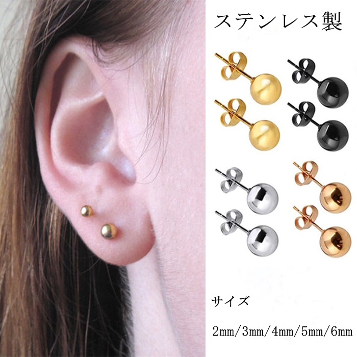 金属アレルギー対応 203. ボールピアス 5ペア(10個) スタッドピアス 2mm 3mm 4mm 5mm 6mm 丸玉 レディ...