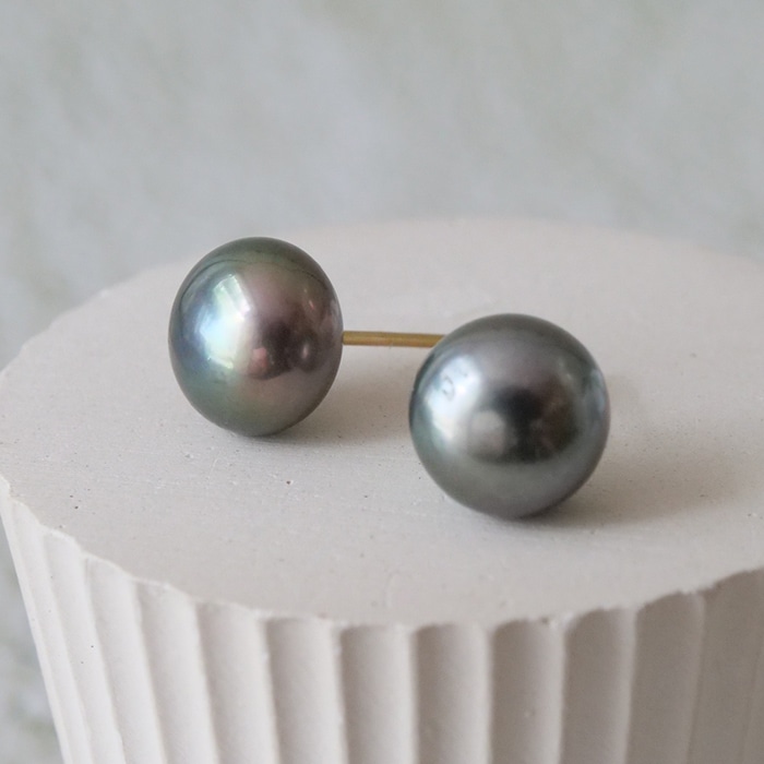 【個数限定】04. 淡水パール ブラック K18 ピアス ボタン 8mm 【日本製】高品質 テリ ピーコック グレー 一粒ピアス ...