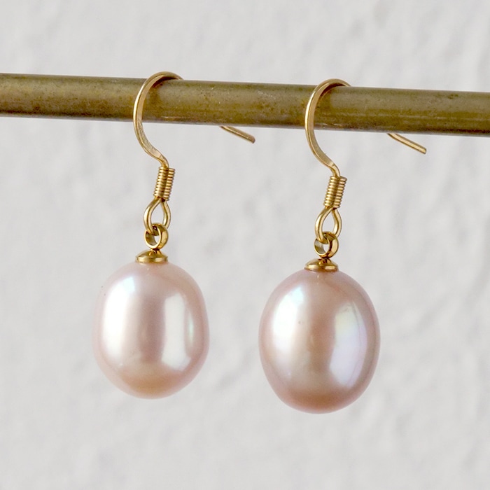 金属アレルギー対応 69.一点物 淡水パール オーバル ピアス 10mmx 12mm ラベンダーピンク 1ペア 一粒 大粒フォーマ...