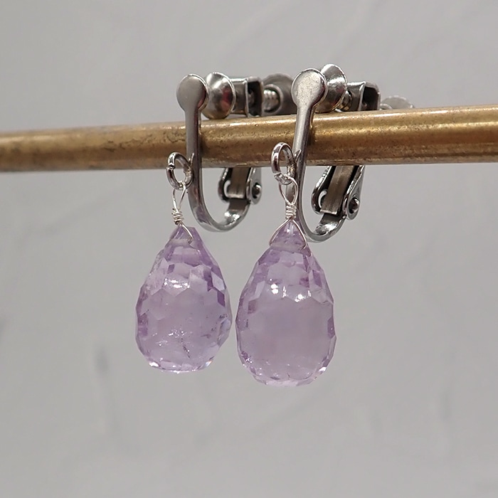 金属アレルギー対応 ローズアメジスト イヤリング ドロップ ステンレス シルバー ネジ式 ねじ式 ネジバネ式 天然石
