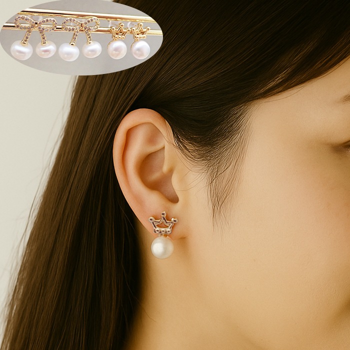 リボン 王冠 淡水パールピアス レディース 上品可愛い 銅製 ゴールド 華やか ギフトに最適 パールアクセ