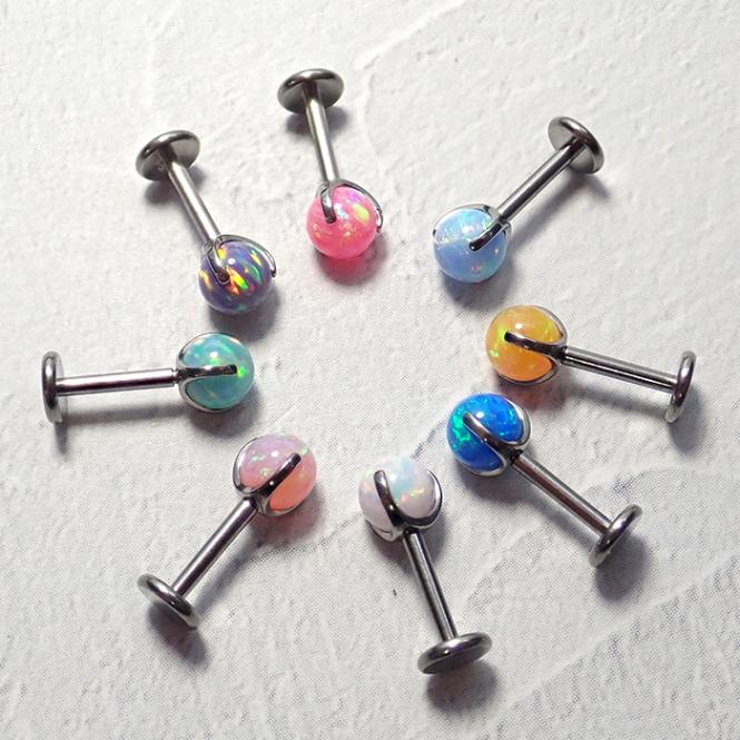 金属アレルギー対応【片耳】206.チタン製 シンセティックオパール ラブレット(1個)18ゲージ ネジ式 ボディピアス 人工 オパ...