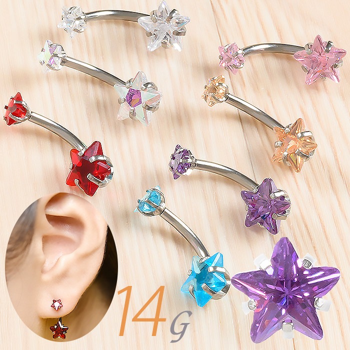 へそピアス かわいい 14g 7色 ボディピアス 星 スター 耳たぶ ピアス 立爪 かわいい 立爪 立て爪 インターナル ヘソピ ...