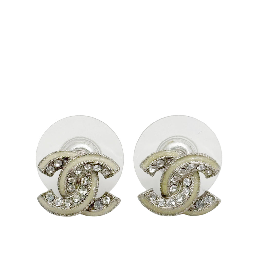 CHANEL シャネル ミニピアス ココマーク 11C ラインストーン/エナメル アイボリー/シルバー