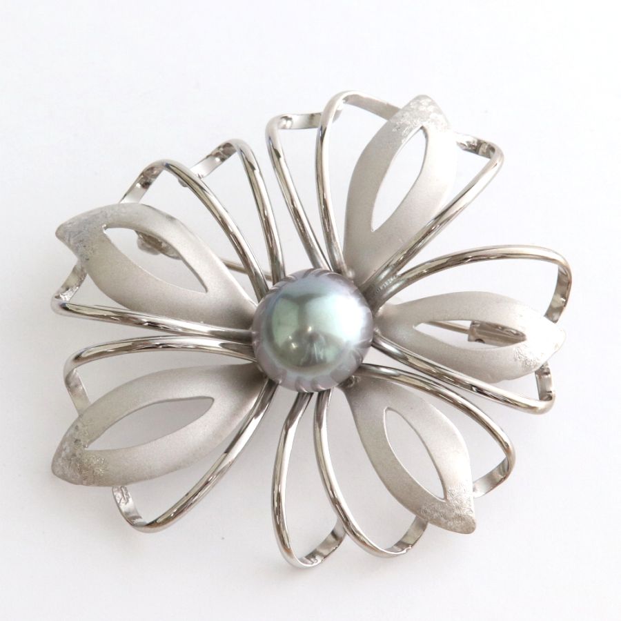 SVタヒチ産黒蝶真珠ブローチ【大きさ11.1mm・縦50mm×横45mm】G5769-1