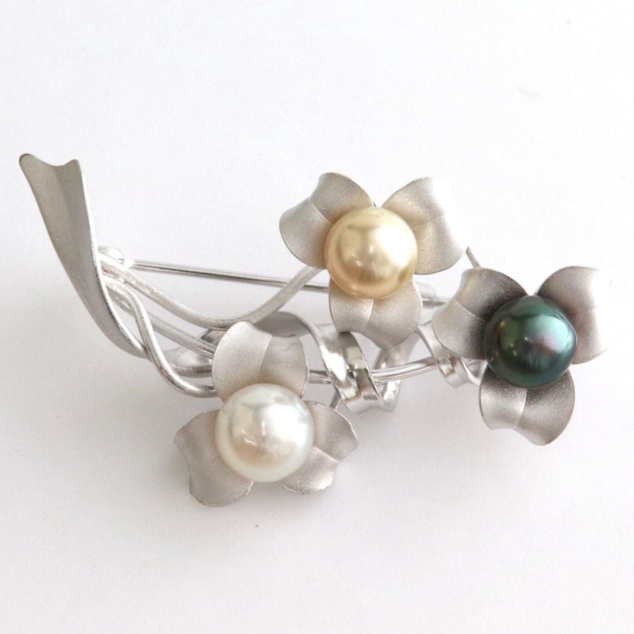 SV白蝶・黒蝶真珠ブローチ【大きさ7mm・縦49mm×横27mm】G5722