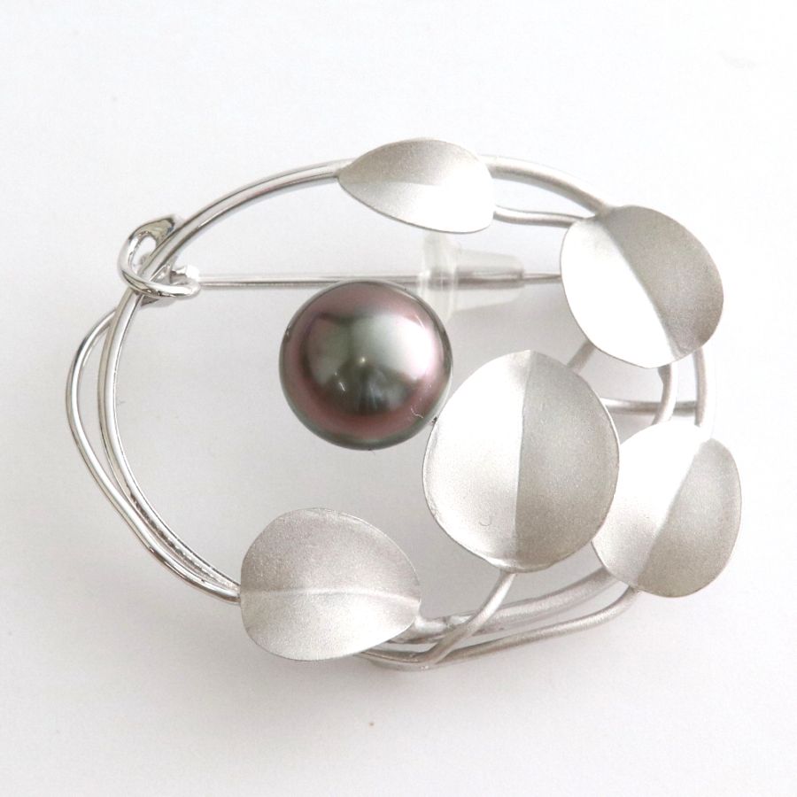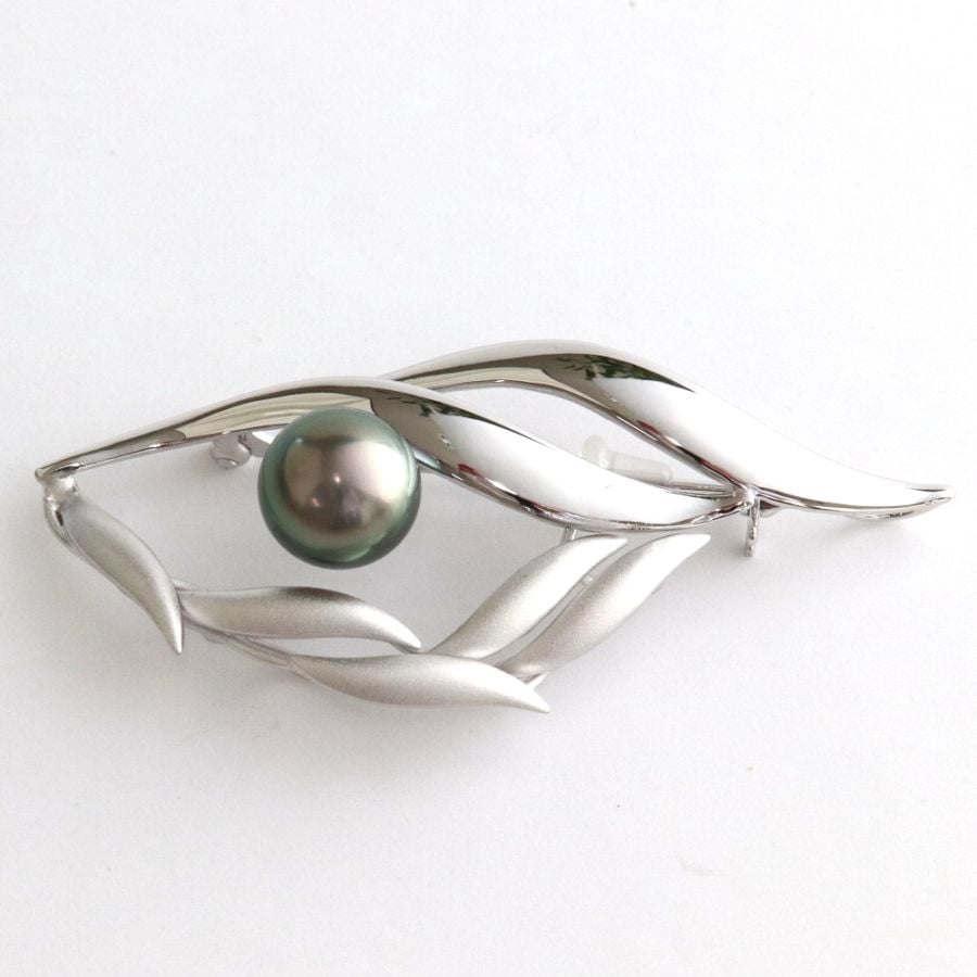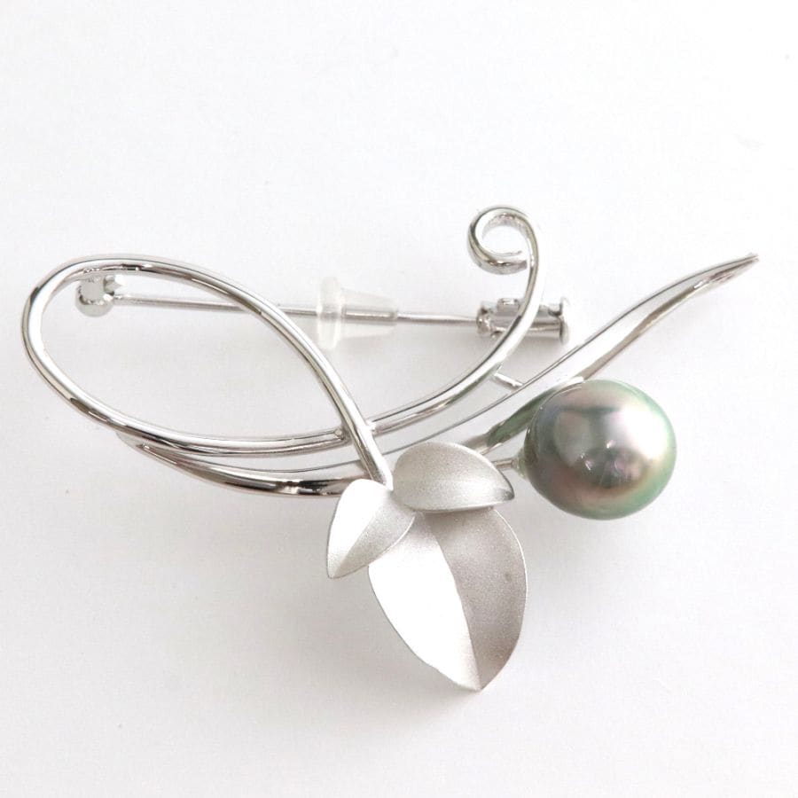 SVタヒチ産黒蝶真珠ブローチ【大きさ9.3mm・縦35mm×横28mm】G5720