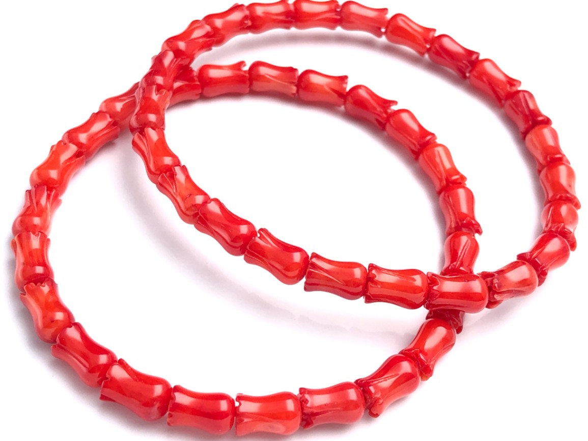 天然石ブレスレット/レッドコーラル(珊瑚/coral)/チューリップカット/約8mm/1本【天然石/パワーストーン】【アメリカツー...