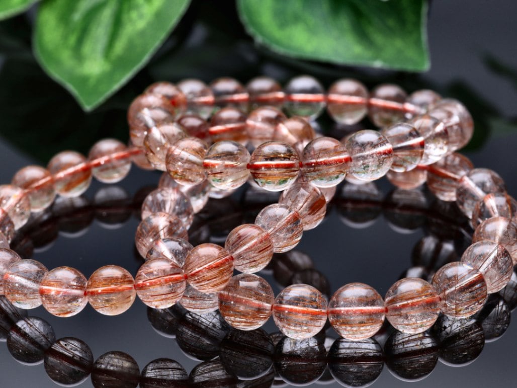 【1点物】金運・財運の石★天然石ブレスレット/オレンジレッドルチルクォーツ(ルチレイテッドクォーツ/Rutilelated qua...