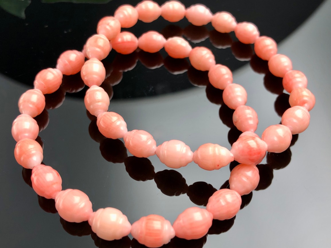 天然石ブレスレット/ピンクコーラル(珊瑚/coral)/ライスカット/7×10mm/1本【天然石/パワーストーン】【アメリカツーソ...