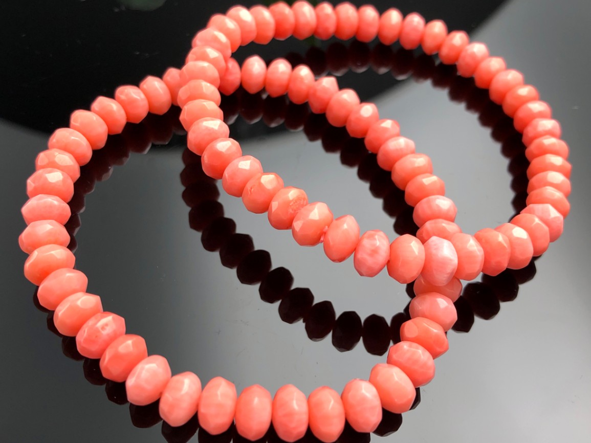 天然石ブレスレット/ピンクコーラル(珊瑚/coral)/ボタンカット/約7mm/1本【天然石/パワーストーン】【アメリカツーソン・...