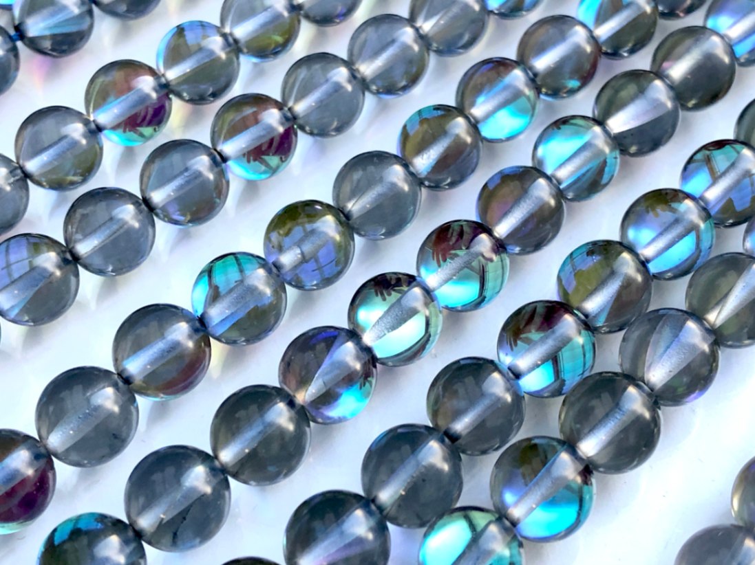 クリアで華やかなブラック系オーロラカラー★パワーストーンビーズ/ブラックムーンクリスタル(ルナフラッシュ)/ラウンド/10mm/1...