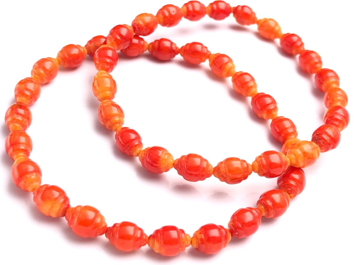 天然石ブレスレット/オレンジコーラル(珊瑚/coral)/ライスカット/7×10mm/1本【天然石/パワーストーン】【アメリカツー...