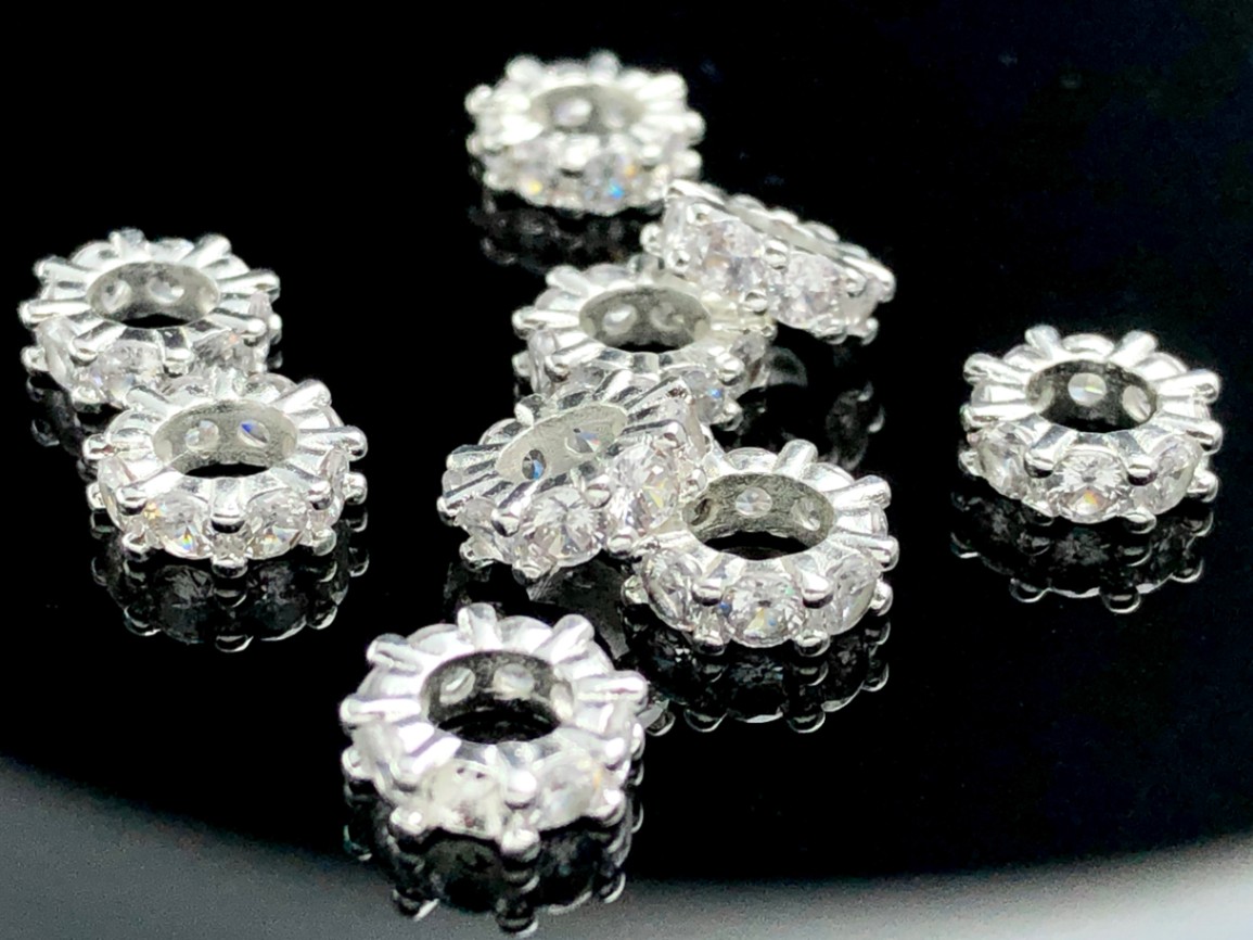 【日本未発売!/新作ロンデル】パーツ・副資材/ロンデル/パヴェczダイヤモンド(キュービック・ジルコニア)/シルバー/8mm/1個...