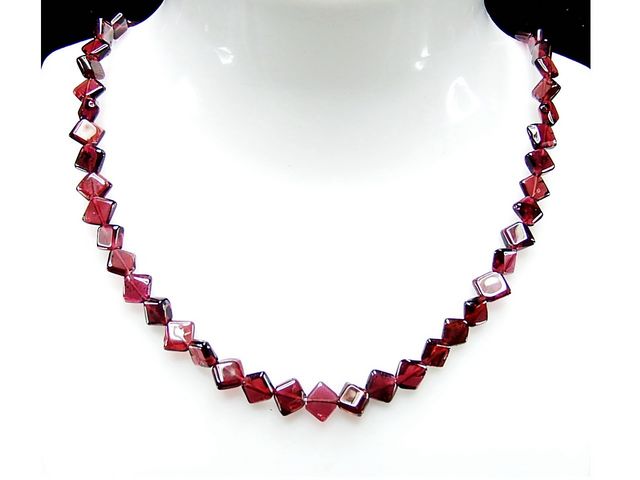 天然石透明度良好ワインレットガーネット四角形ワイヤネックレス