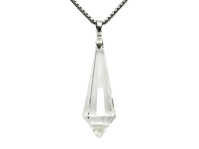 AAA-本水晶しずくカットペンダント天然石ステンレスネックレス