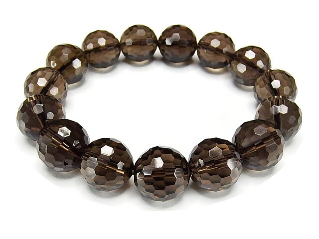 茶水晶スモーキークォーツ大玉128面カット約14mmAAA±天然石数珠ブレスレット