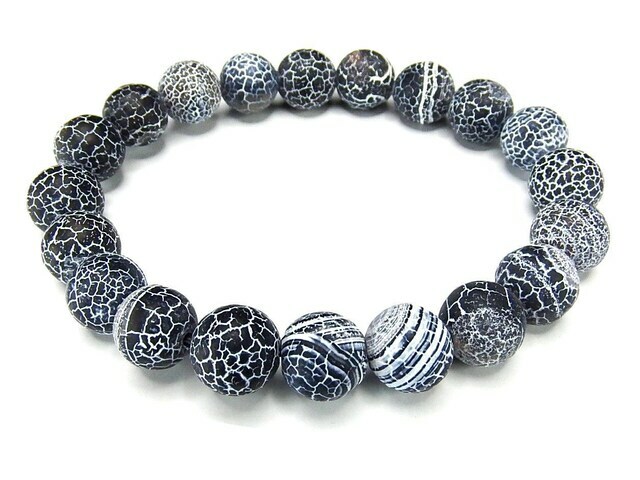 レア天然石黒フロストドラゴンアゲート約10mm数珠ブレスレットM22-02