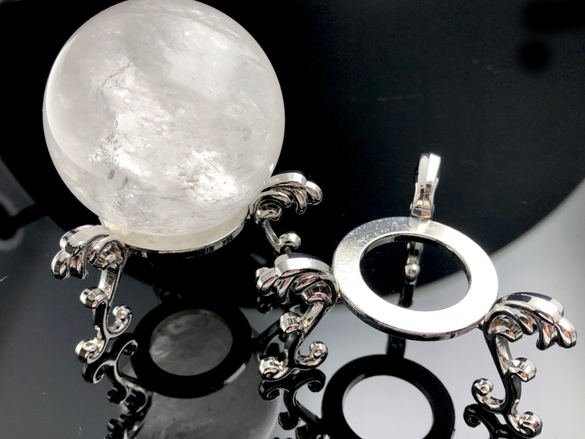 エレガントデザイン★天然石スフィア用台座/ディスプレイ/シルバーカラー/Lサイズ/1個【天然石/パワーストーン】【アメリカツーソン...