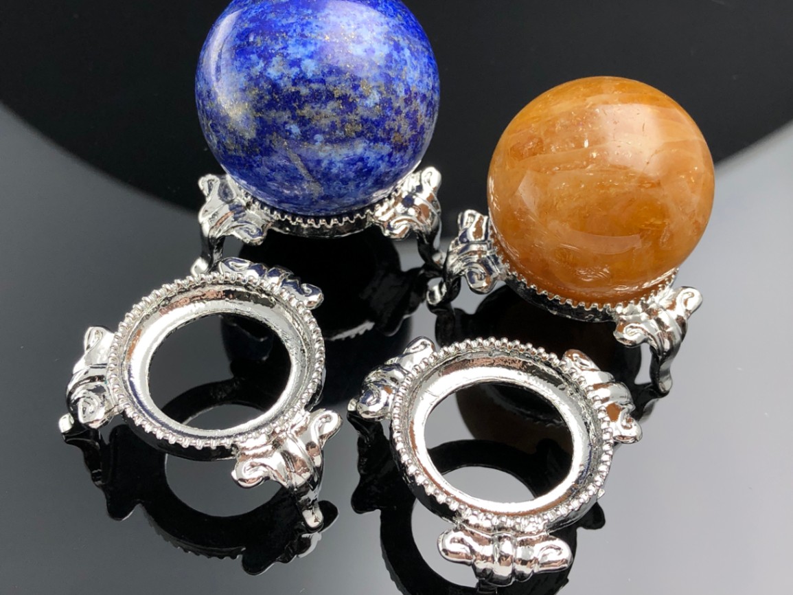 ゴージャスデザイン★天然石スフィア用台座/ディスプレイ/シルバーカラー/Sサイズ/1個【天然石/パワーストーン】【アメリカツーソン...