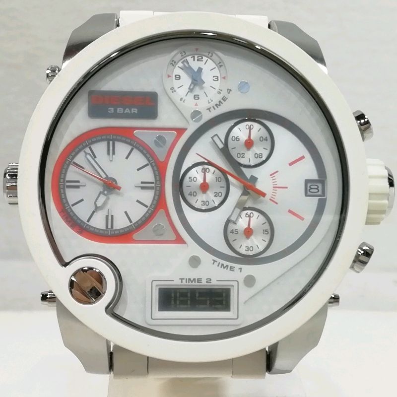 ナバルウォッチ・ロウワーケース・3連メタルブレス・ホワイトフェイス・黒ベゼル・クオーツ・デイト無。